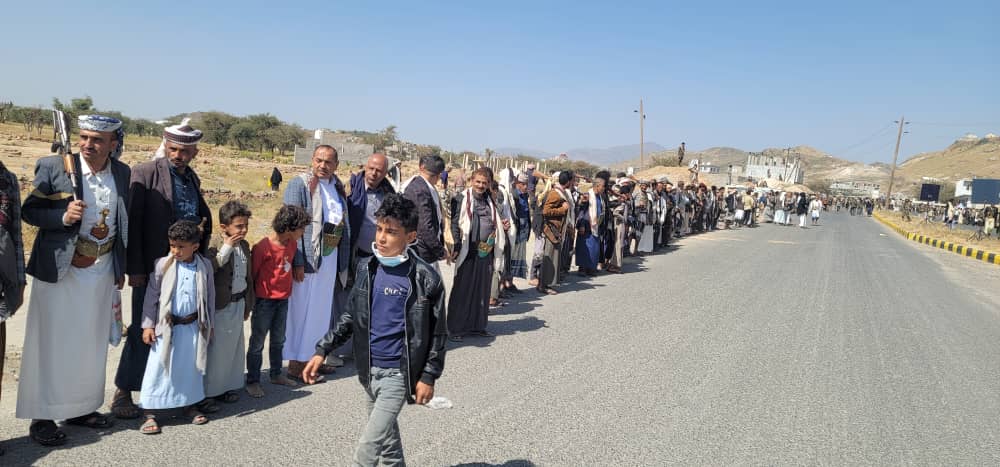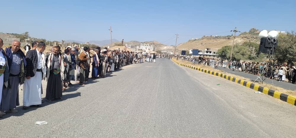 وكان مسؤول التعبئة العامة بالمحافظة قد ألقى كلمةً أشار فيها إلى أن قبائل اليمن وابناءها جميعهم صفا واحدا ضد العدو الصهيوني والامريكي وكل مخططاتهما او محاولاتهما النيل من شموخ وعزة وكرامة وموقف هذا البلد وقيادته وقواته المسلحة . مجددا العهد والولاء للسيد القائد عبدالملك بدر الدين الحوثي حفظه الله بالثبات على الموقف والاستعداد والجهوزية لتنفيذ توجيهاته وقراراته التي يراها مناسبة ..