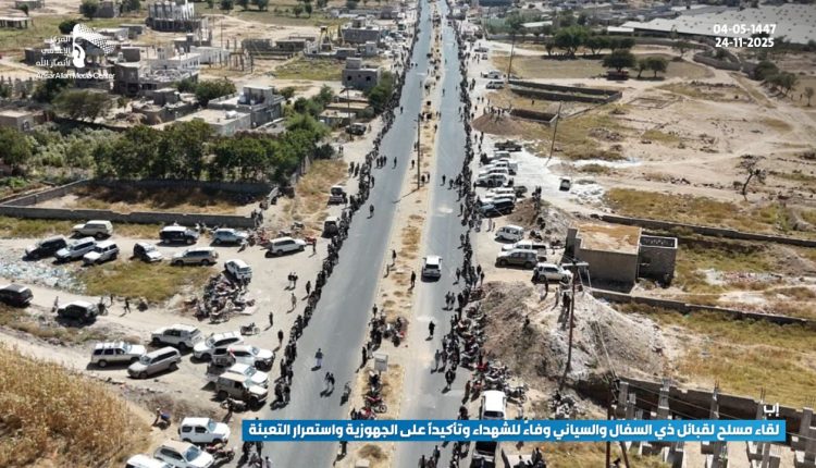 قبائل مديريتي ذي السفال والسياني بإب تعلن الاستعداد والجهوزية لمواجهة الأعداء .