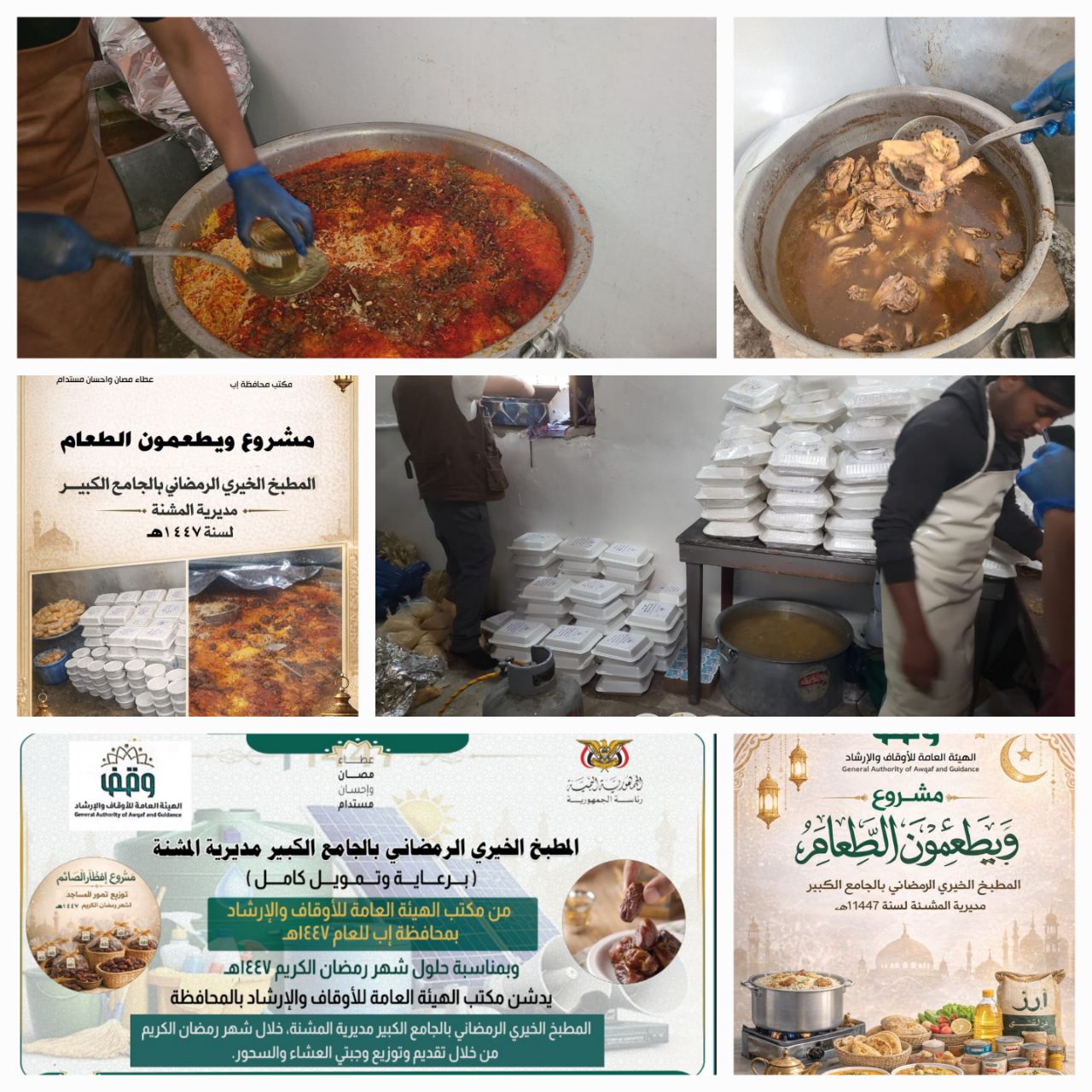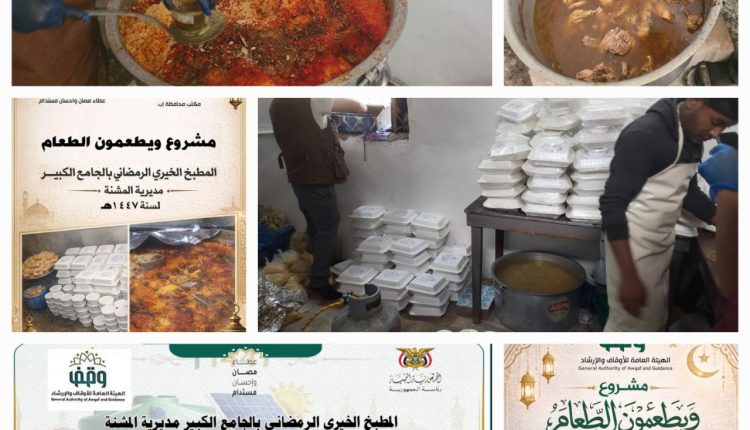 دشّن مكتب الهيئة العامة للأوقاف والإرشاد بمحافظة إب، اليوم، مشروع المطبخ الخيري الرمضاني للعام 1447هـ، في الجامع الكبير بمدينة إب القديمة.