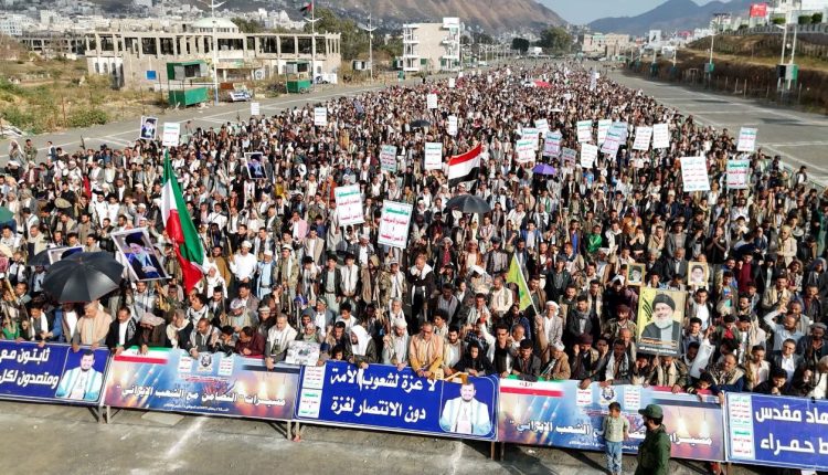 مسيرات حاشدة في مائة ساحة بإب تضامنًا مع الشعب الإيراني ..
