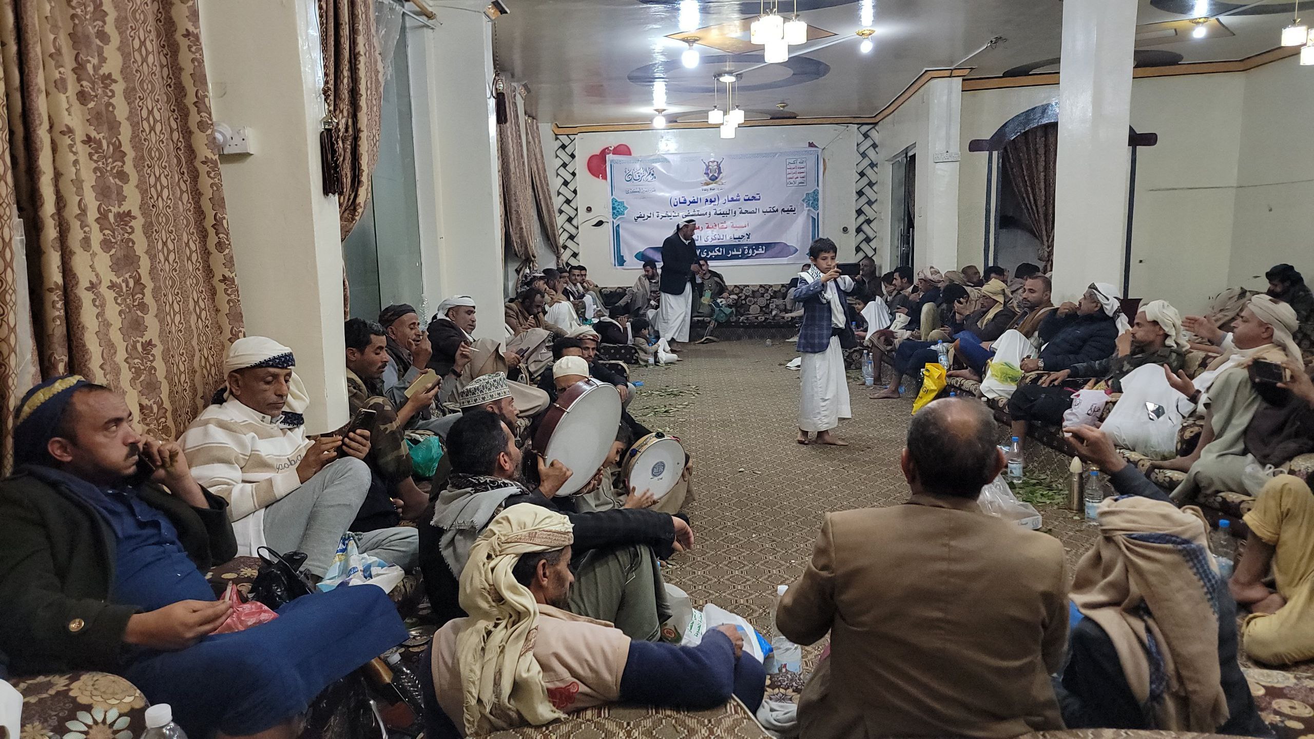ونظمت امسية مساء اليوم في منطقة نجد العدن بمديرية حزم العدين حضرها وكيل المحافظة جمال الحميري ، وامسية للتعبئة العامة وادارة شرطة مديرية السدة حضرها مساعد قائد المنطقة العسكرية الرابعة اللواء حمود شثان وكذلك امسية في عزلة وادي الحبالي بالسدة ، وامسية في مركز مديرية مذيخرة ، وامسية في مديرية الرضمة ، وامسيات في مديرية فرع العدين نظمتها ادارة شرطة المديرية وامسية لفرع هيئة الزكاة وامسية في عزلة المزاحن ..