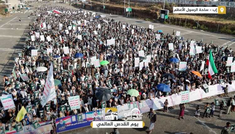 واعتبر المحتشدون من أبناء إب ، المشاركة الواسعة في المسيرات، رسالة واضحة بأن الشعوب الحرة لن تتخلّى عن مسؤولياتها الدينية والإنسانية تجاه فلسطين، وأنها ماضية في دعم كل أشكال النضال المشروع لتحرير الأرض والمقدسات… مؤكدين في بيان مسيراتهم أن يوم القدس العالمي، يشكل مناسبة لتوحيد صفوف الأمة وتعزيز الوعي بمخاطر المشروع الصهيوني الذي يستهدف الأمة ومقدساتها، داعين إلى استمرار التحرك الشعبي والرسمي لنصرة القضية الفلسطينية حتى تحقيق التحرير الكامل.