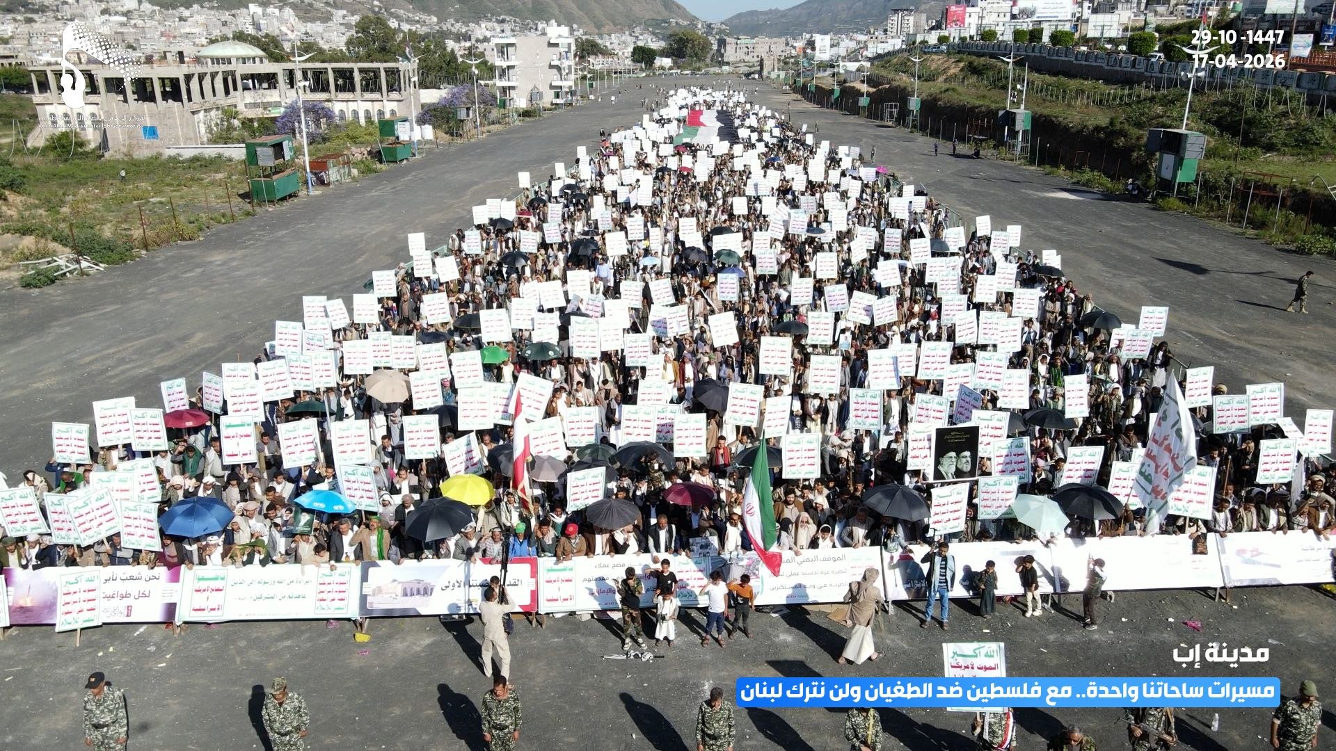 أبناء إب يحتشدون في اكثر من 300 ساحة تأكيدًا على واحدية الساحات ومع فلسطين ولبنان ضد الطغيان