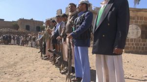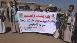 نظم ابناء منطقة المقاطن بريف إب وقفة احتجاجية ضد العدوان وجرائمه الوحشية بحق ابناء الشعب اليمني .