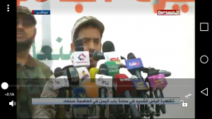 صنعاء | إب نيوز 2017/3/3 :-: شهدت ساحة باب اليمن في العاصمة اليمنية، اليوم الجمعة، مظاهرة كبيرة حملت عنوان ” البأس الشديد ” لتأييد ومباركة التطورات النوعية للقوة الصاروخية ودائرة التصنيع العسكري، وتدشين المرحلة الثالثة من حملة “أشداء على الكفار” .