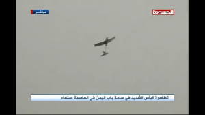 وبالتزامن مع تحليقٍ لطائرات بدون طيار تابعة للجيش واللجان الشعبية رفع الحاضرون في المظاهرة هتافات دوت أرجاء المكان مرددة ” طائرة بدون طيار .. انتجها الشعب المغوار” كما حمل المشاركون لافتات كُتب عليها ” نحييكم ونفتخر بكم، إنجازات القوة الصاروخية سيسجلها التأريخ بحروف من نور”.