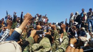 إب نيوزب19جمادي اخر 1438هـ الموافق 2017/3/18م :- نظم ابناء مديريتي ذي السفال والسياني بمحافظة اب اليوم وقفة مسلحة حاشدة ضد العدوان واستمرار جرائمه البشعة بحق ابناء الشعب اليمني .