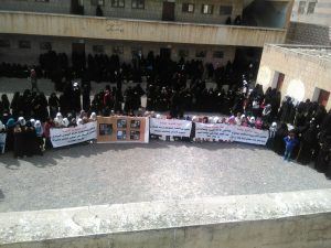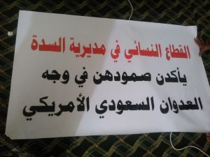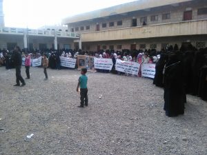 إب نيوز 2 رجب 21438هـ الموافق 2017/3/30 :- نظم القطاع النسائي بمديرية السدة محافظة إب اليوم وقفة ضد العدوان تحت شعار (عامان من الصمود الاسطوري ضد العدوان ) .