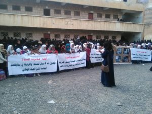 وفي الوقفة التي تخللها عدد من الفقرات الانشادية والمسرحية القيت العديد من الكلمات اشادت في مجملها على الدور البطولي والتضحيات التي يجسدها ابطال الجيش واللجان في جبهات القتال ضد العدوان وعظمة الصمود الاسطوري الذي يجسده ابناء الشعب اليمني بكل فئاته واطيافه وشرائحه . مشيرات الى ان اليمنين مهما طال العدوان واستمر بارتكاب جرائمه لن يستسلموا ولن يفرطون بوطنهم واستقلالهم ويخونوا دماء الشهداء . لافتات الى انه مادام العدوان قائم فالصمود والمواجهة قائمة ولعشرات السنين . داعيات الامم المتحدة الى العمل على الايفاء بما تعهدت به بضمان صرف مرتبات الموظفين اليمنين التي طالها العدوان عبر المؤامرة على البنك المركزي بصنعاء والاستيلاء على ارصدته وسيولته النقدية .