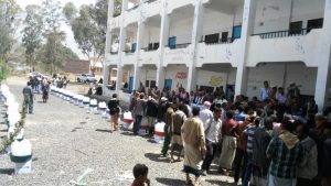 دشنت اليوم في مديرية السياني بمحافظة اب مؤسسة النقاء الخيرية التنموية ووزع خلال حفل التدشين (550) حقيبة صحية للنازحين بالمديرية مقدمة من منظمة اليونسيف ومؤسسة المياه فرع إب .
