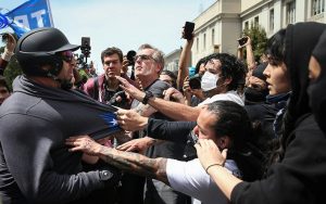 وكالات | إب نيوز 19 رجب1438هـ الموافق 2017/4/16م :- أصيب عدد من الأشخاص بجراح خلال اشتباكات بين مؤيدين ومعارضين للرئيس الأميركي، دونالد ترامب، في مدينة بيركلي التابعة لولاية كاليفورنيا، حسبما أفادت قناة “سي إن إن” الأميركية.