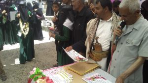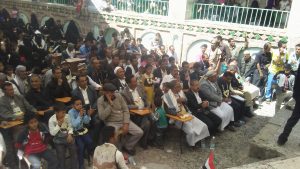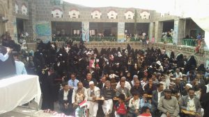 كما القيت كلمات للمركز الاستاذ محمد لطف بالمديرية تعبر عن المركز التعليمي والقطاع التربوي والقطاع الثقافي لانصار الله حثت في مجملها على اهمية التكاتف والتلاحم والصمود بين ابناء الشعب اليمني في وجه العدوان خاصة في قطاع التعليم برغم المعاناة الشديدة التي يعانيها الكادر التربوي بسبب توقف المرتبات منذ اشهر بسبب العدوان ونقله للبنك المركزي .