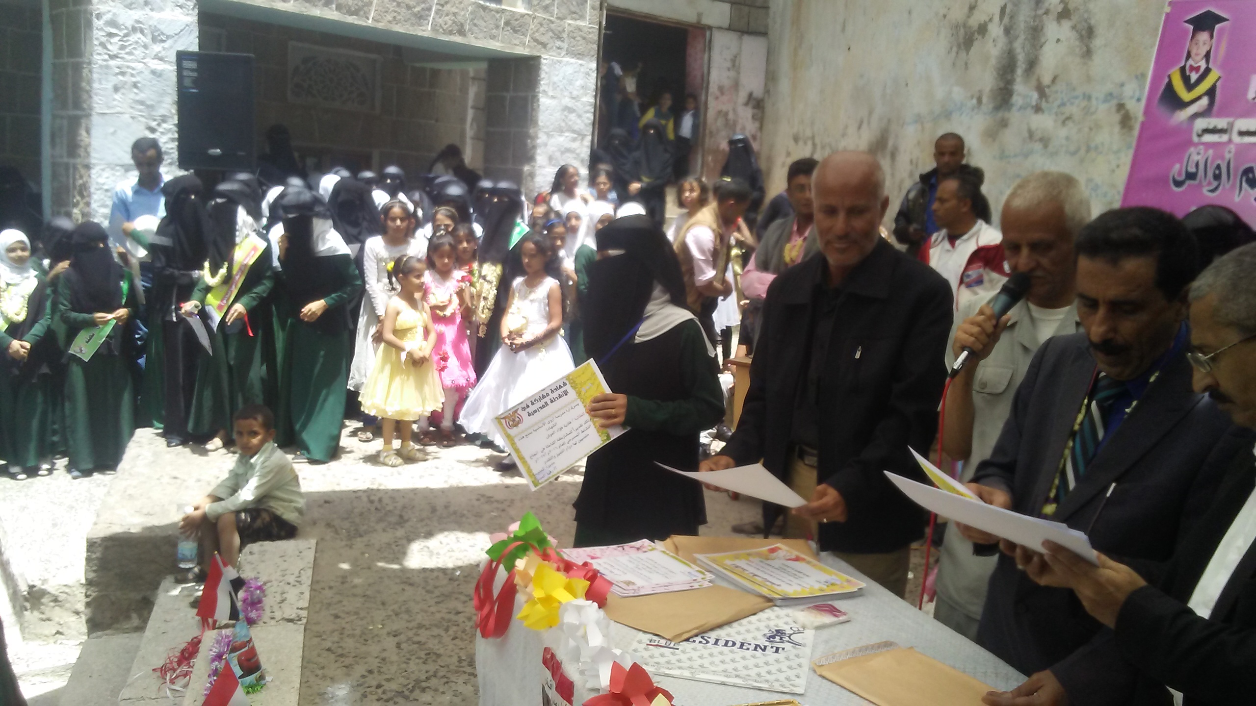 إب نيوز 25 رجب 1438هـ الموافق 2017/4/22م :- نظمت مدرسة أروى بمديرية جبلة محافظة اب حفلا تكريميا لطلابها المتفوقين تحت شعار ( عامان من الصمود في وجه العدوان ) .