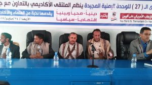 إب نيوز 28 شعبان1438هـ الموافق2017/5/24 :- اقام الملتقى الاكاديمي بجامعة إب اليوم بمناسبة الذكرى ال(٢٧) للوحدة اليمنية و تحت شعار لا للارهاب الامريكي على اليمن ندوة حول ( تأثير الارهاب الامريكي على اليمن سياسيا ودينيا وصحيا واقتصاديا وبيئيا ) .