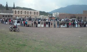 وفي الوقفة اكد المشاركون استمرار صمودهم ومواجهتهم للعدوان ومرتزقته في الداخل من خلال رفد الجبهات بالرجال والمال . مشيرين في بيان وقفتهم بأن الشعب اليمني عصي على كل اعداءه على مر العصور ولن يفلح العدوان السعودي الامريكي ابدا في النيل منه او اركاعه مهما تمادى في عدوانه وجرائمه التي لن تزيد اليمنيين الا صمودا وقوة وعزيمة على النصر ولا شيئ سوى النصر . مشيدين ببطولات الجيش واللجان الشعبية وانجازات القوة الصاروخية التي كان اخرها امس باسقاط طائرة اف ١٦ في صنعاء بصاروخ ارض جو .