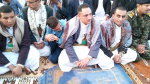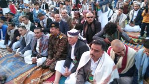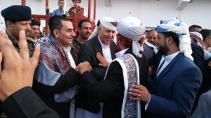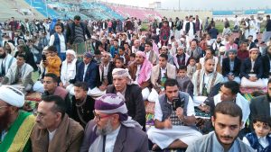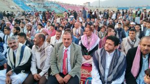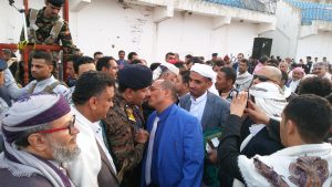 بعدها تبادل المحافظ ومعه قيادات انصار الله والسلطة المحلية التهاني مع جموع المواطنين في الذين حضروا صلاة العيد في الاستاذ الرياضيي بالمحافظة .