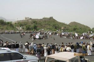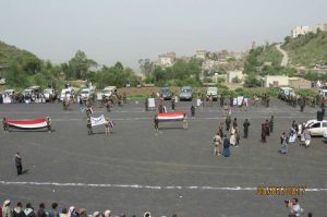شاهد بالصور: وقفة ونفير عام لأبناء مديرية المخادر بإب إلى جبهات القتال ضد العدوان .