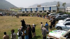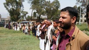 إب نيوز6ذي القعدة1438هـ الموافق2017/7/29 :- اقام ابناء عزلة الحوج العدني بمديرية المشنة محافظة إب اليوم وقفة حاشدة اعلنوا فيها التحشيد والتعبئة الجهادية الى مختلف جبهات القتال ضد العدوان ومرتزقته .