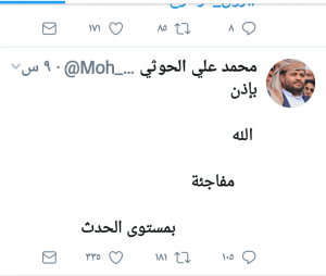 وكان محمد علي الحوثي في 29 من يوليو أكد في منشور مماثل “من الميدان ليس بالبعيد بإذن الله مفاجئة” وبعدها مباشرة تم اطلاق مجموعة صواريخ باليستية من نوع بركان على الطائف.