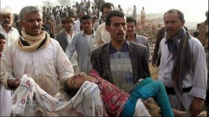 إب نيوز12ذي القعدة1438هـ الموافق2017/8/4 :- في جمعة السعي الى ذكر الله جرائم وحشية من فكر لا يعلم اين الله جريمتين بدلاً من خطبتين وبدلاً من النداء لصلاة الجمعة لا صوت يعلوا فوق صوت الطائرة والغارات والانفجارات والبكاء والعويل..