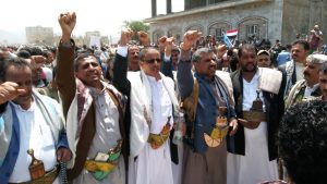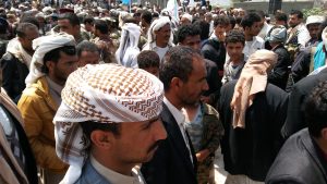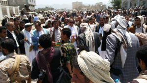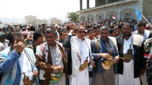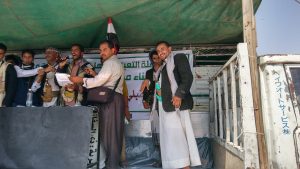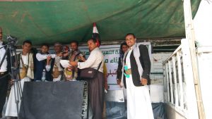 فيما تلى القاضي عبدالفتاح غلاب البيان الختامي لوقفة النكف القبلي الذي اكد على استمرار النفيير العام رفد الجبهات بالمال والرجال واستمرار الصمود والتلاحم بين الكونات السياسية الوطنية ؛ داعين اليمنين الذي غرر بهم العدوان بالعودة الى احضان الوطن والكف عن تدمير وطنهم خدمة لعملاء اليهود والامريكان ؛ مؤكدين ان معركة اليمنين اليوم تعد مصيرية وسينبني عليها مستقبل ابناء هذا البلد العريق .