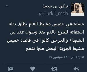 إب نيوز4محرم1439هـ الموافق2017/9/24 اطلقت يوم أمس القوة الصاروخية للجيش واللجان الشعبية مساء اليوم صاروخا باليستيا من نوع قاهر M2 على قاعدة الملك خالد الجوية في خميس مشيط بعسير السعودية