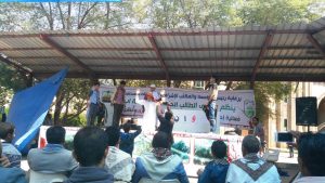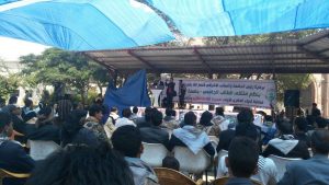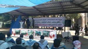 إب نيوز12محرم1439هـ الموافق2017/10/11 :- نظم ملتقى الطالب بجامعة إب اليوم فعالية ثقافية وخطابية احياءا لذكرى عاشوراء والذكرى الاولى لمجزرة الصالة الكبرى التي ارتكبها العدوان بصنعاء.