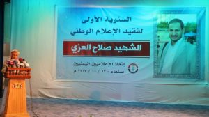إب نيوز22محرم1439هـ الموافق2017/10/12 :- أحيا اتحاد الإعلاميين اليمنيين الذكرى السنوية الأولى لشهيد الاعلام الوطني وفارس الكلمة صلاح العزي صباح اليوم الخميس في العاصمة صنعاء.