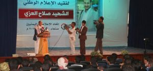 هذا ومنح رئيس اتحاد الاعلاميين درع الاعلام الوطني لأسرة وأقارب الشهيد خلال الفعالية اعترافا بالدور الريادي الذي سطره الشهيد صلاح العزي في مواجهة العدوان معتبرا أن رحيل الشهيد العزي فقد الإعلام اليمني أحد فرسانه وقادته الأبطال.