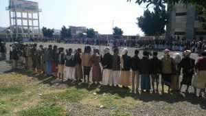 ابناء ومعلمو ذي السفال بإب يطالبون الامم المتحدة في الايفاء بالتزاماتها لصرف مرتبات الموظفين .