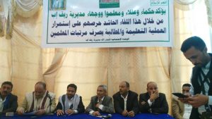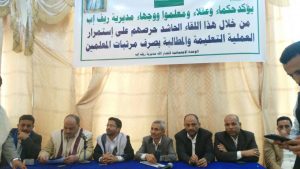 هذا وكان الوكيل الشاهري قد القى كلمة اكد فيها ضرورة ان يستشعر الحكماء والمشايخ والوجاهات الدور المنوط بهم في توعية الناس بمخططات العدوان ومؤامراته بحق ابناء هذا الشعب ويعملوا على الحد من استقطاب ابناء هذا البلد للقتال في صفهم ضد وطنهم واخوانهم. مشددا على اهمية التعليم وما يسعى اليه العدوان الغاشم من ايقاف للمدارس حتى يتشرد ابناءنا ويكونوا عرضة للضياع وهذا ما لا يمكن في ظل وعي وصمود ابناء اليمن وفي مقدمتهم التربوين الذين هم اكثر حرصا على استمرار العملية التعليمية رغم الظروف الصعبة التي يعيشونها نظرا لانقطاع الرواتب .