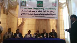 وفي ختام اللقاء رفع المشاركون رسالة عاجلة لمندوب الامم المتحدة للمطالبة بالايفاء بما التزموا به للشعب اليمني بضمان صرف المرتبات ذيلوها بتوقيعاتهم .