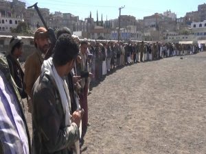 ابناء مديرية الظهار بإب ينددوا بالصمت الدولي ازاء معاناة اليمنيين جراء العدوان .