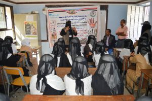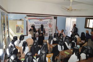 إب نيوز12ربيع أول1439هـ الموافق2017/11/30 :- تفقد منسق برامج حمايه الاطفال بمحافظة تعز عبدالرحمن الشرعبي ومعه مشرف فريق التوعيه بمخاطر الالغام بمحافظة تعز العقيد علي الصغير اليوم جلسات التوعيه التي تنفذها فرق التوعيه بمخاطر الاجسام الغريبه والغارات الجويه ومخلفات الحروب والذي ينفذه المركز الوطني لمكافحة الالغام بالتعاون مع مكتب الشئون الاجتماعيه والعمل بمحافظة تعز بدعم من منظمة اليونيسيف .