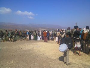 وقفة قبلية حاشدة في الدليل بمخادر إب رفضا لمليشيا عفاش.