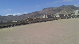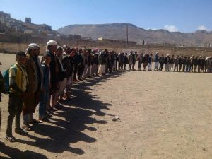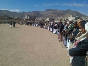 وبدورهم اكد المشاركون في الوقفة الاستمرار في التصدي للعدوان الغاشم من خلال التحشيد ورفد الجبهات بالمقاتلين والمال والانتصار لدماء الشهداء الذين سقطوا في سبيل هذا الوطن وكرامته وعزته والذين سقطوا جراء قصف طائرات العدوان من المدنين والنساء والاطفال .