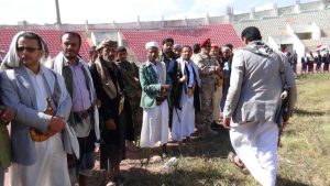 كما القى عبدالواحد المروعي وكيل المحافظة كلمة باسم العلماء حيا فيها انجازات وبطولات الجيش واللجان في كافة الجبهات والتي كان اخرها الصاروخ الذي اطلق على الامارات وكذا التقدير لكل من ساهم في افشال هذه المؤامرة من الاجهزة الامنية واللجان والاحرار والشرفاء من كافة القبائل والاحزاب اليمنية ؛ مشيرا الى ان كل من يقف ضد العدوان فوق رؤسنا لانه يجسد المقاومة والجهاد ضد الاستكبار والظلم الذي يقتل اليمنين كل يوم ويدمر كل جميل فيها ؛ داعيا الجميع الى الحفاظ على نعمة الامن والاستقرار وحقن الدماء بين ابناء الشعب الواحد .