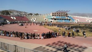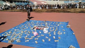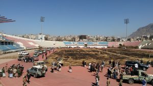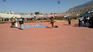 إب نيوز1ربيع ثاني1439هـ الموافق2017/12/19 :-اقيمت اليوم بمحافظة إب وقفة جماهيرية مسلحة بمناسبة الف يوم من الصمود في وجه العدوان الغاشم وسيرت قافلة مالية مبلغ ٧ ملايين ريال فضلا عن مواد وعينية وغذائية للمرابطين في جبهات العزة والشرف .