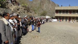 وندد المشاركين من طلاب ومعلموا المعاهد في بيان وقفتهم بالتصريحات الامريكية المستفزة للقبائل اليمنية على لسان سفيرها باليمن وبالموقف الامريكي المعادي للاسلام والمسلمين في اعتبار القدس عاصمة للصهاينة .
