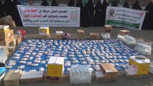وفي الوقفة التي رافقتها قافلة من المواد الغذائية للمرابطين في الجبهات اكدت المشاركات اهمية هذه الحملة في تعزيز الصمود والتصدي لهذا العدوان البربري الغاشم وتأكيدا على عزم اليمنين مواصلة النضال والمواجهة والصمود للعدوان واذياله حتى تحقيق النصر وتحرير كامل الارض اليمنية ؛ مشيدات في بيان وقفتهن بعظمة التضحيات لابناء هذا الشعب وبدون استثناء فالعدوان استهدف كل اليمنين ولعل تضحيات الشهداء من ابطال الجيش واللجان الذين قدموا ارواحهم فداء لهذا الوطن والشعب يمثل اعظم تضحية تستدعي من كافة ابناء الشعب مواصلة الصمود وعدم الرضوخ والاستسلام وفاء لدماء الشهداء الطاهرة .
