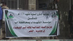 تدشين السلة الغذائية لاسر الشهداء في القفر ويريم والنادرة والسدة والرضمة بإب .
