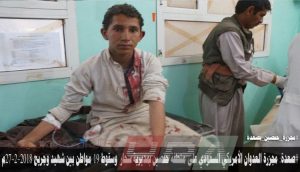 مؤكدا أن طيران التحالف عاود شن غاراتين على ذات المنطقة مستهدفا المواطنين المسعفين الذين هرعوا إلى المنزل المستهدف وحال دون انقاذ الضحايا ما اسفر ايضا عن ارتفاع عدد الضحايا والذين وصل عددهم إلى 19 شخصا منهم 5 قتلى و 14 جريحا بينهم عدد من المسعفين في حصيلة غير نهائية.