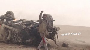 إب نيوز13جمادي ثاني1439هـ الموافق2018/3/1 :- وزع الإعلام الحربي صور من مشاهد لتدمير آلية بلغم ارضي وتدمير آلية اخرى تم اعطابها سابقا بعبوة ناسفة في الخليفين بمديرية خب والشعف .
