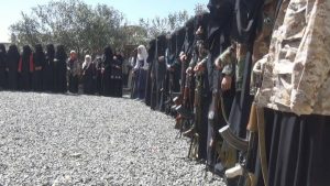 أقيمت اليوم في مديرية الشعر بمحافظة إب وقفة نسائية مسلحة غضبا ومناصرة للمرأة اليمنية التي اغتصبها أحد الجنود السودانين في مدينة الخوخة .