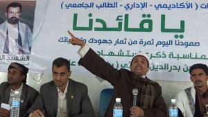 وفي الندوة التي نظمتها ملتقيات الجامعة ( الاكاديمي والاداري والطالب ) إحياء لذكرى استشهاد السيد القائد حسين بدر الدين الحوثي ؛ وأدارها نائب رئيس جامعة إب الدكتور فؤاد حسان وحضرها نائب المشرف العام بالمحافظة عبدالفتاح غلاب وأمين عام الجامعة عبدالملك السقاف القيت ثلاث أوراق عمل تناولت ورقة العمل الأولى شخصية السيد القائد ومشوار جهاده ونضاله حتى استشهاده قدمها صادق وجيه الدين .