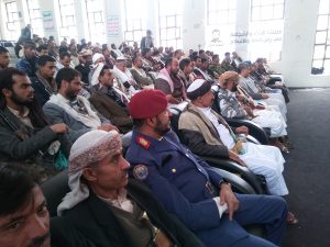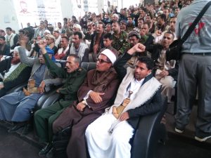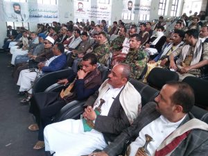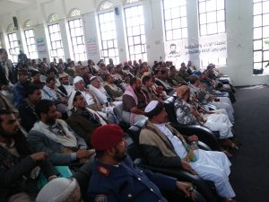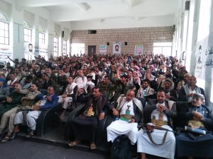 وألقى الدكتور محمد الحبيشي الاستاذ بكلية القانون جامعة إب كلمة باسم الاكاديمين والعلماء اكد فيها أن اليمانيون على أيديهم سيكتب الله النصر على اليهود وهذا ما يتضح جليا من خلال القرآن الكريم ؛ لافتا أن الشهيد القائد الذي يعد امتدادا للسلالة الطاهرة جاء بمنهج قويم يعتمد على القرآن ؛ مشيرا إلى حكام الخليج الذين باعوا انفسهم من اجل كراسي الحكم لأعداء الامة من الامريكان واليهود سيكون مصيرهم الخزي والذل والهزيمة على ايدي رجال هذا المسيرة المباركة.
