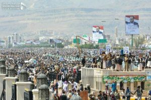 وفي مشهد تأريخي لم تشهده العاصمة صنعاء من قبل اكتض ميدان السبعين “أكبر ميادين العاصمة” والشوارع المحيطة به بملايين اليمنيين الحاملين لصور الرئيس الشهيد الذين توافدوا من صنعاء ومن مختلف المحافظات اليمنية.