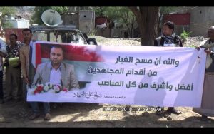 ودعا المشاركون في بيان وقفتهم إلى تهيئة المجتمع نحو البناء والعمل تحت مظلة مشروع الرئيس الشهيد يد تبني ويد تحمي ؛ وسيستمر هذا المشروع الذي ضحى الشهيد بروحه في سبيله وسينفذ واقعا وبتعاون احرار وشرفاء هذا البلد وهم كثر ..