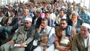 من جانبه أشار العلامة حمود العواضي في كلمته عن العلماء والخطباء إلى ضرورة استمرار التعبئة العامة ورفد الجبهات بالمال والرجال .