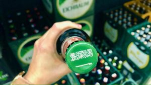 بالصور : لفظ الجلالة وعَلَم السعودية على زجاجات الخمور والشعب غاضب